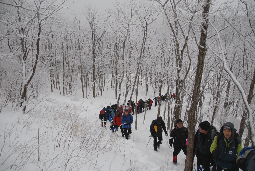 눈길을 가야하는 어려운 산행길이라