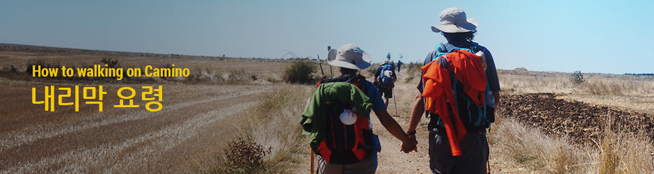 까미노 순례 길에서 내리막은 오르막을 오르는 것만큼이나 힘이 듭니다. 처음 내리막을 걸을 때 걷기가 쉽다고 해서 함부로 달리듯이 내려오면 절대로 안 됩니다. 체중과 배낭의 하중 때문에 무릎관절이나 발목, 그리고 허리에 갑작스럽게 충격이 가해지기 때문에 무릎통증이 생기고 물집의 원인이 되며 서있기 힘들 정도로 허리에 통증이 오기도 합니다. 뿐만 아니라 척추에 충격이 가해지게 되어 오랫동안 내리막을 걸은 다음에는 두통을 일으키기도 합니다.