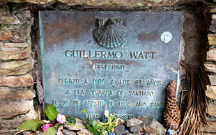 살세다에서는 잠시 포장도로를 벗어나 오솔길을 따라 까미노를 걸을 수 있습니다. 이곳에서 산띠아고 데 꼼뽀스뗄라를 하루 남기고 순례 중에 유명을 달리한 기예르모 와트를 기리는 기념비가 있습니다. 청동으로 만든 등산화 안에는 지나가던 순례자가 놓아둔 꽃과 각종 기념물들로 넘쳐납니다.
