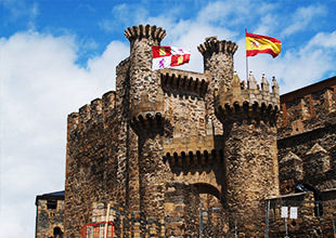 템플 기사단의 성에서 시작된 까미노는 까라스꼬 도로로 이어지고, 성 안드레스 성당, 엔시나 바실리카 성모 성당이 있는 광장으로 이어집니다. 계속하여 까미노는 렐로흐 거리를 통해서 시청 광장까지 이어집니다. 뽄페라다는 엘 비에르소의 수도였으며 까미노 프란세스의 주요 도시 중 하나입니다. 이 도시는 근처의 금광 때문에 많은 사람들이 살았으며 1082년부터 까미노 프란세스의 주요한 루트가 되었습니다. 도시에서 가장 순례자의 눈길을 사로잡는 것은 템플 기사단의 성입니다. 산띠아고 데 꼼뽀스뗄라를 향하는 지친 순례자를 보호하는 임무를 부여 받아 1178년에 건축된 이 성은 돌로 만들어진 거대한 암호이자 템플기사단의 비밀스러운 기호가 숨어있다고 전해집니다.