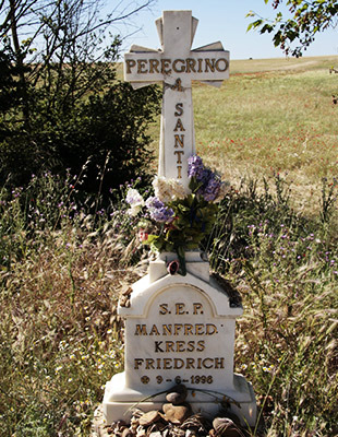 베르시아노스 델 레알 까미노를 거쳐 엘 부르고 라네로로 가는 전통적인 까미노 프란세스를 걷기 원한다면 깔사다 델 꼬또에 들어가선 안 됩니다. 따라서 다리를 건널 필요도 없습니다. 까미노는 약 한 시간 반 가량을 계속 직선으로 이어집니다. 이 길은 걷기에 더할나위 없이 좋습니다. 길은 끝없는 평원 위로 이어져 있고, 작은 연못을 지나면 발데쁘레센떼 시내의 다리를 건너게 됩니다. 이윽고 오래된 뻬랄레스 성모 성당이 나타납니다. 성당을 지나면 순례자 쉼터가 나오고, 작은 시내를 건너면 1998년 이 길에서 생을 마감한 독일인 순례자인 만프레드 크레스를 기리는 대리석 십자가를 만나게 됩니다.