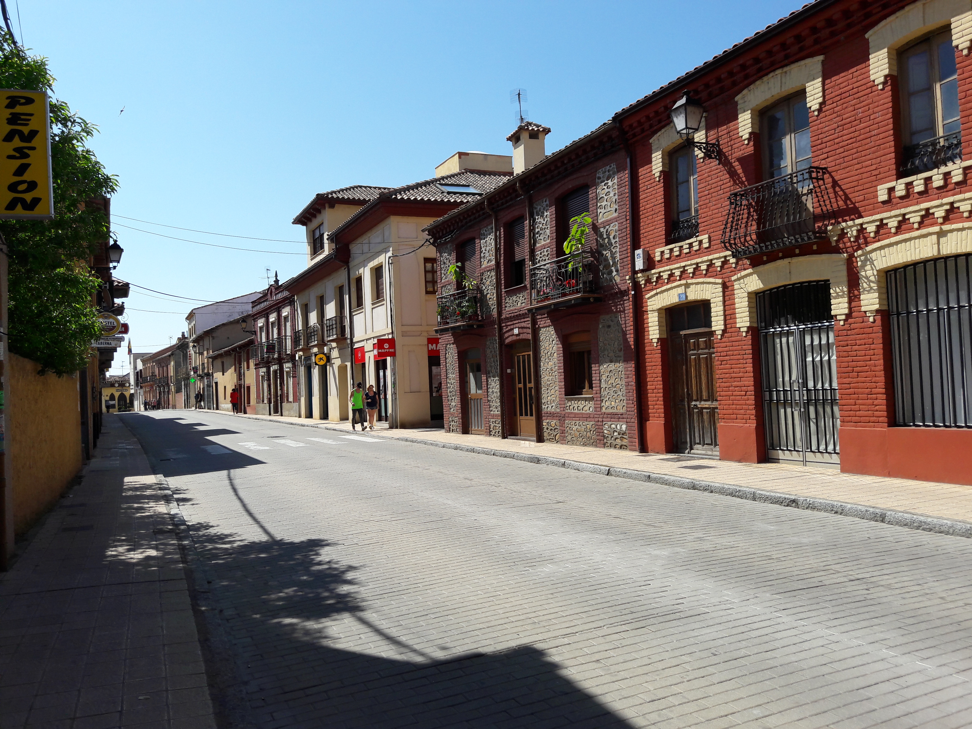 버스 정류장에서 N-120 도로를 건넌 순례자의 앞에 산띠아고 데 꼼뽀스뗄라로 향하는 고속도로 위를 지나는 다리가 보입니다. 다리를 넘으면 바로 산 베니또 수도회의 재미있는 이야기가 숨어있는 깔사다 데 꼬또가 나옵니다. 드디어 레알 거리로 들어서면 커다란 광장이 나타나고, 얼마 지나지 않아서 마을의 출구가 나옵니다. 마을의 출구에는 곡식을 쌓아둔 창고들이 들어서있습니다. 이제 순례자의 눈앞에는 넓은 평원이 펼쳐져 있으며, 밀밭 길을 지나면 사아군에서 출발하는 기차를 만나게 되는 철로를 넘어야 합니다. 여기에서부터 까미노는 떡갈나무가 무성한 나지막한 언덕 위로 구불구불 이어집니다. 순례자는 그늘 아래서 뜨거운 햇빛을 피할 수 있고, 새들의 지저귐 이외에는 적막이 가득한 것을 느낄 수 있습니다. 이 길은 명상과 기도에 많은 도움을 줍니다. 또한 숲이 끝나는 지점에서 약 1킬로미터 정도를 직진하면 오른쪽으로 검정 버드나무 숲 사이로 순례자를 위한 쉼터와 샘물을 만날 수 있습니다. 그 후 완만한 언덕길을 오르면 깔사디야 데 로스 에르마니요스에 도착합니다.