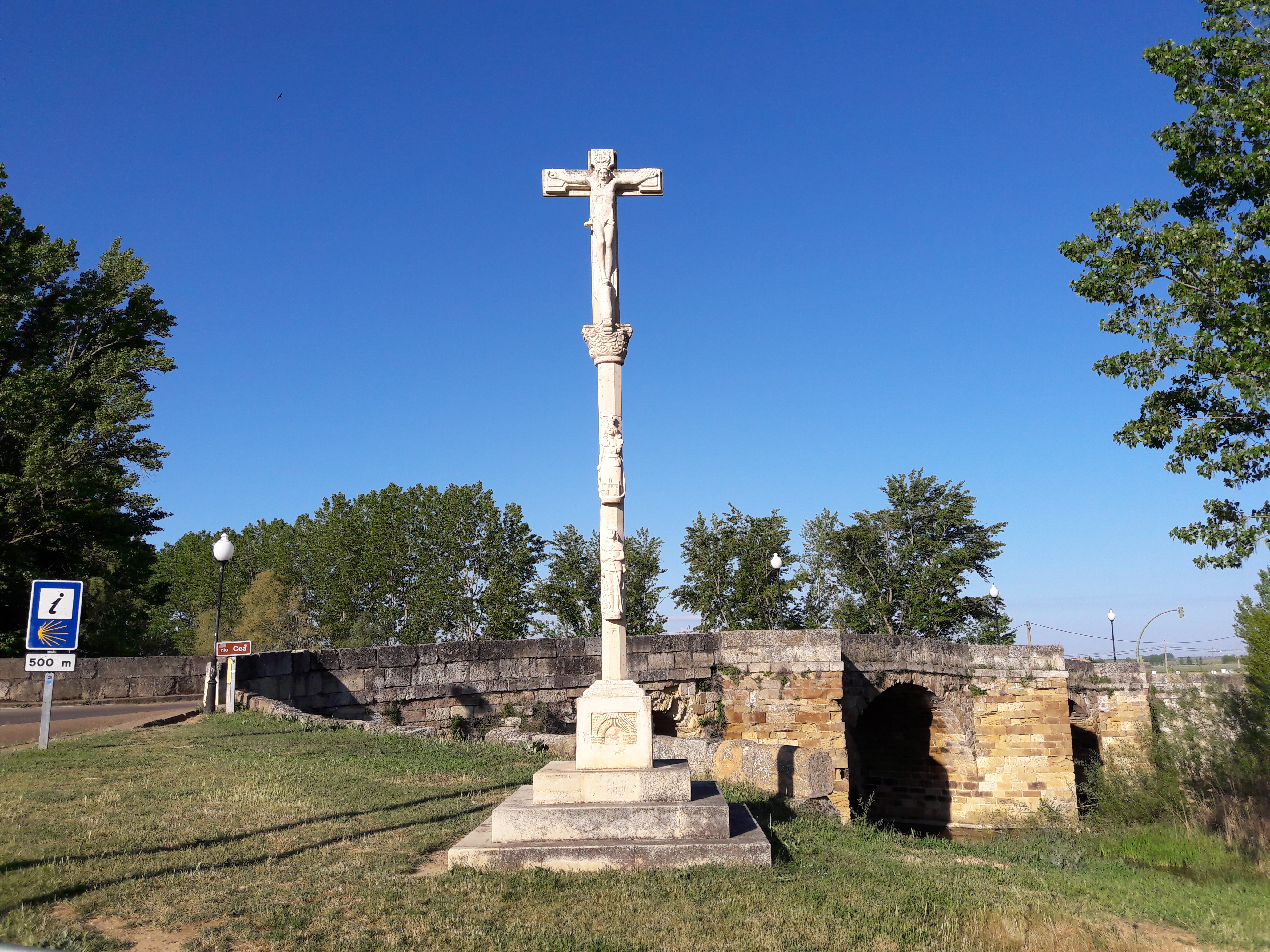 이제 사아군에 도착하기 약 3킬로미터 전에 있는 뿌엔떼 성모성당에 도착하기 전까지 까미노가 아스팔트로 포장된 길로 변하는 것을 볼 수 있습니다. 성당을 지나면서 까미노는 다시 부드러운 흙 길로 변하고, 자동차 전용도로의 밑으로 이어지는 까미노를 따라 가다보면 어느새 사아군에 도착하게 됩니다. 사아군 기차역을 돌아가는 길을 따라서 철길을 옆으로 끼고 걷게 되면 사아군의 오래된 구시가지에 도달하게 됩니다.