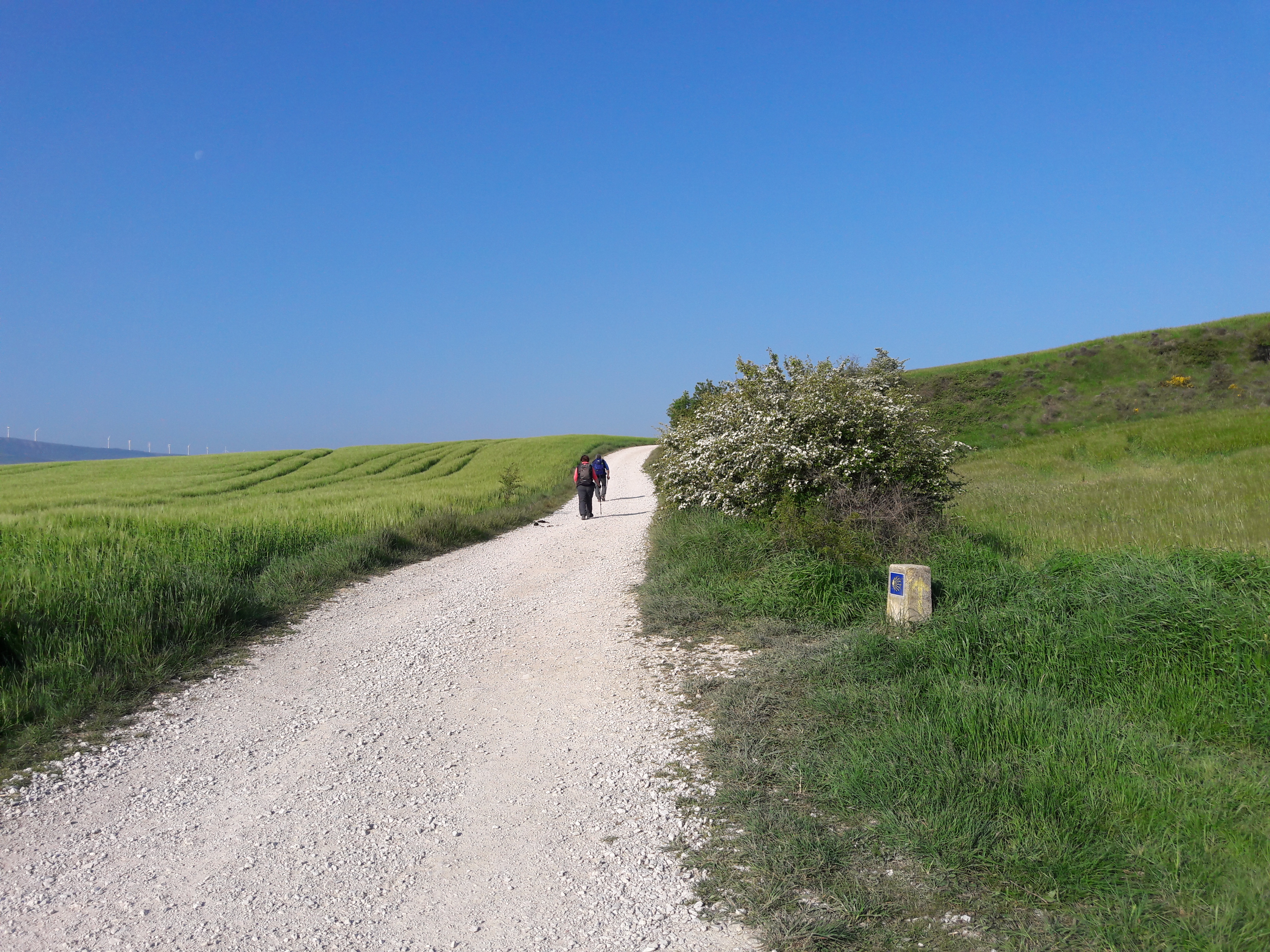 언덕을 다 올라가면 에스떼야를 향하는 가벼운 내리막이 나옵니다. 이 길을 따라가면 2002년 산띠아고를 향하다 이 길 위에서 숨을 거둔 캐나다 사람인 캐서린 킴톤을 추모하는 페레그리나의 묘비가 세워져 있으며 에스떼야를 통과하며 이후 리사라까지 순례자와 함께 걷게 되는 에가 강 위에 나무와 철로 만들어진 다리를 건너면 목적지에 도착합니다.
