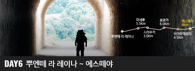 지나온 마을들에 비해서 상당히 커다란 마을인 비야뚜에르따로 들어가기 전에는 순례자의 지친 발을 쉬게 해줄 수 있는 매력적인 숲이 이어지고 차가운 샘물과 빵 가게와 레스토랑, 약국이 있는 두 개의 광장을 가로지르면 마을에 도착합니다.