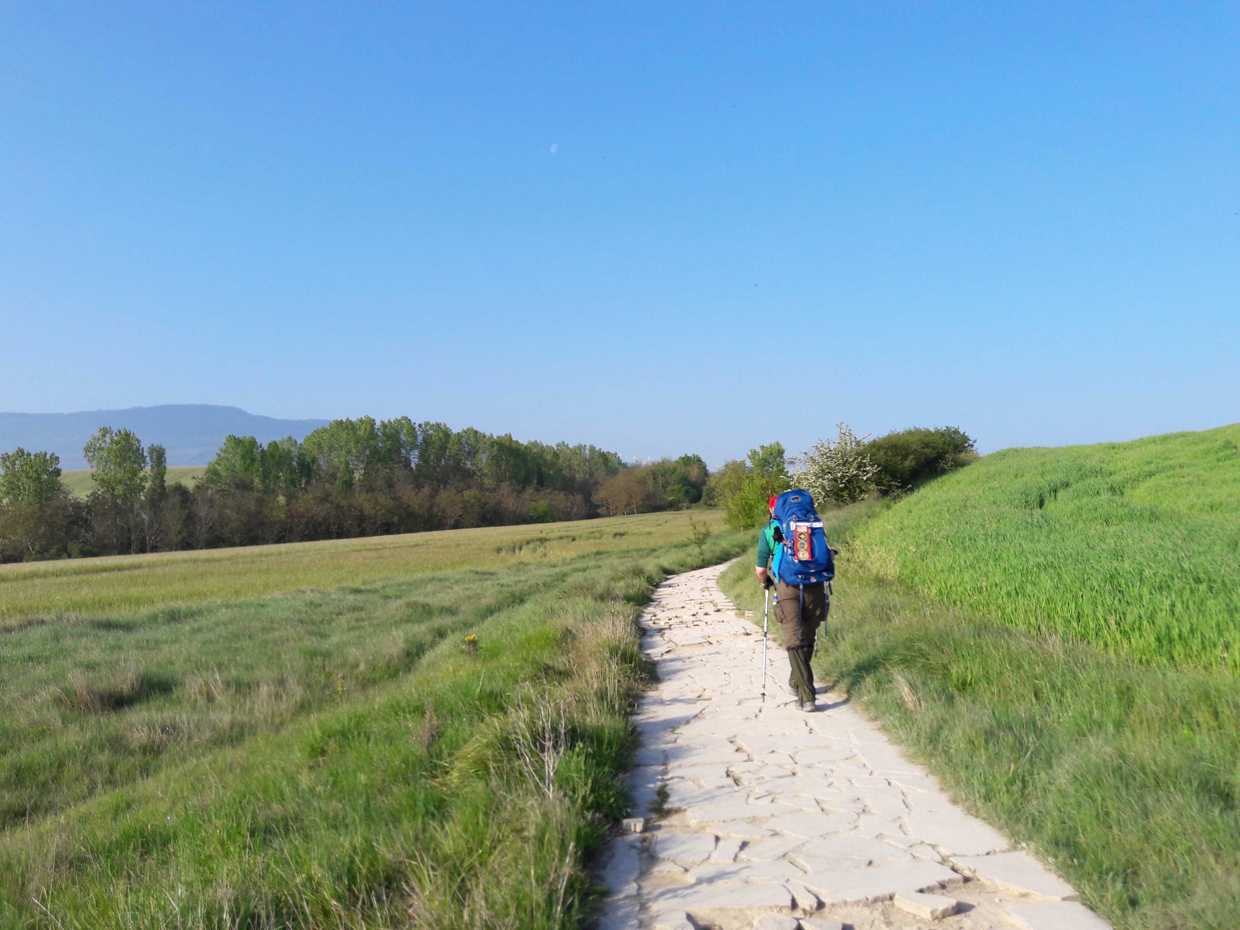 마차가 다니기 위해서 폭이 최소 5미터가 넘었던 길은 빗물을 잘 빠져나가게 한 배수로를 가지고 있었으며 바닥에는 커다란 돌을 토대로 기초공사를 하여 아직까지 희미하게나마 그 흔적을 간직하고 있습니다. 중세의 로마길을 지나온 순례자는 현대에 만들어진 다리와 빰쁠로나와 로그로뇨를 이어주는 고속도로를 만나게 됩니다. 순례자는 몇 십 미터 사이에서 중세와 현대의 도로를 동시에 걸을 수 있게 되는 것입니다.