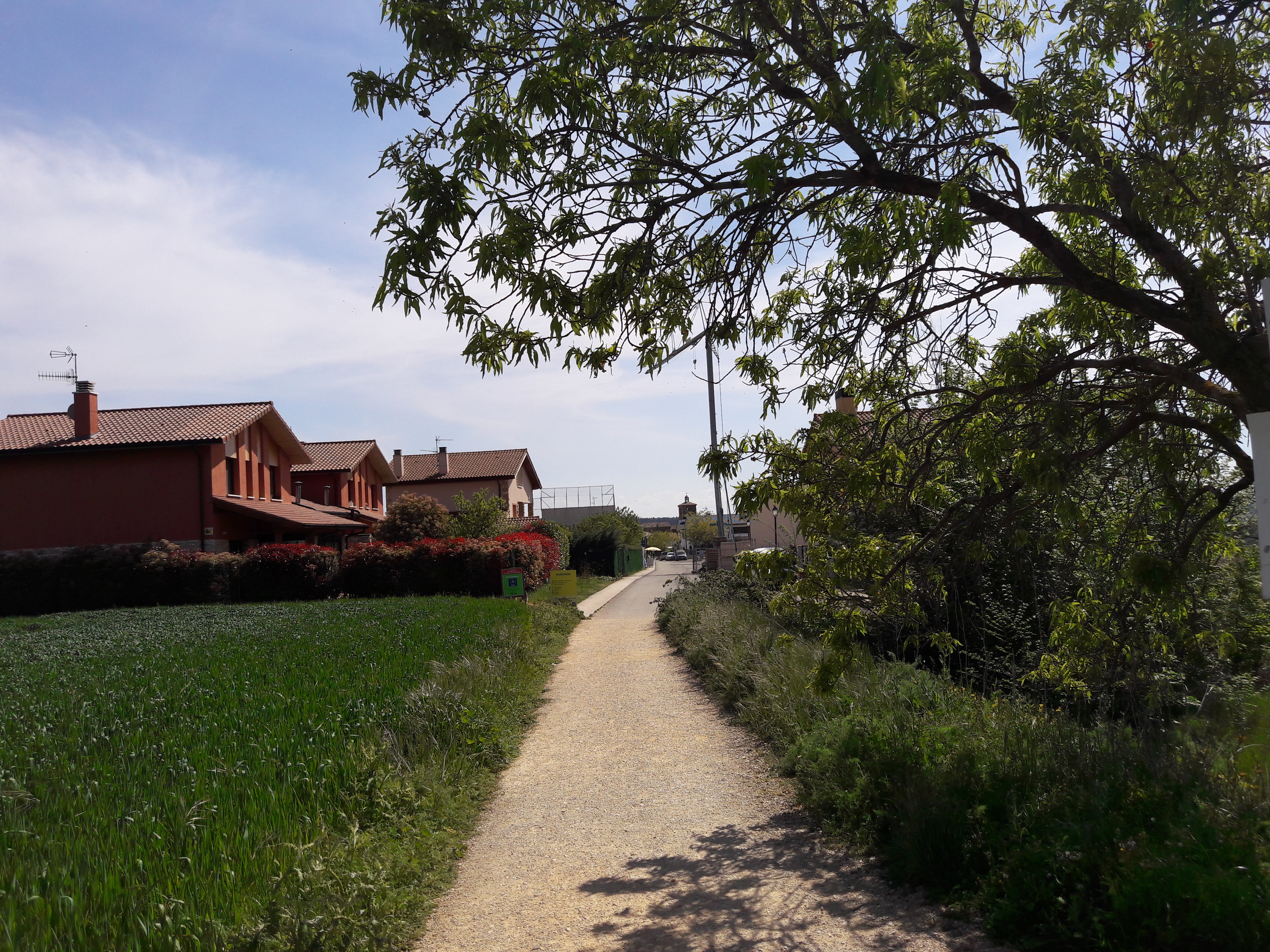 로르까를 나오는 길은 마을 출구의 N-11 고속도로와 연결되기 이전 왼쪽으로 나있는 좁은 길을 따라가야 합니다. 이후 순례자는 왼쪽으로 몬떼후라를 바라보며 자동차 도로 아래의 밭길을 지나게 됩니다.