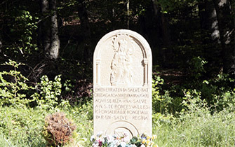 메스키리츠 고개 정상에서 만나게 되는 비석