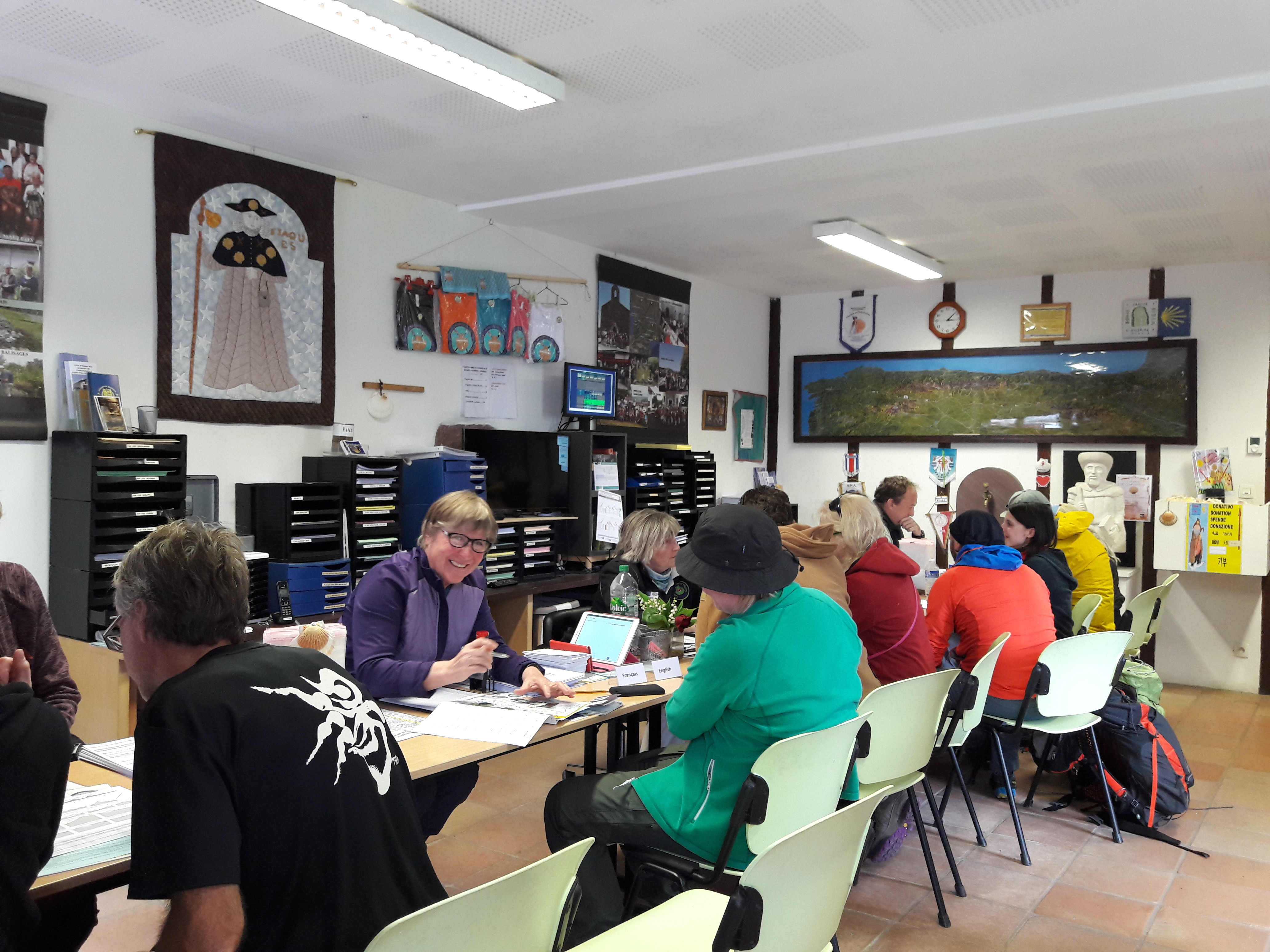 국내에서 순례자 여권을 만들지 못했습니다.면 이곳에서 순례자 여권인 끄레덴시알을 만들어야 합니다. 이 길의 최종 목적지인 산띠아고 데 꼼뽀스뗄라나와 피스떼라까지 가는 길에서 자신이 순례자임을 증명할 수 있는 끄레덴시알에는, 지나는 마을의 알베르게와 성당, 카페 등에서 개성 넘치는 스탬프를 받을 수 있습니다. 순례자는 끄리덴사알 신청시 순례의 목적을 잘 골라야 합니다. 끄레덴시알을 만들면 알베르게를 배정 받거나 소개 받고, 이때부터 생장 피에드포르를 즐겨보세요.